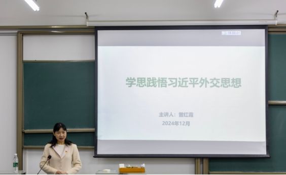 (通讯员:陈心洁)12月1日,华农公司党总支书记、经理曾红霞在四教A109为公司入党积极分子讲授题为“学思践悟习近平外交思想”的主题党课。