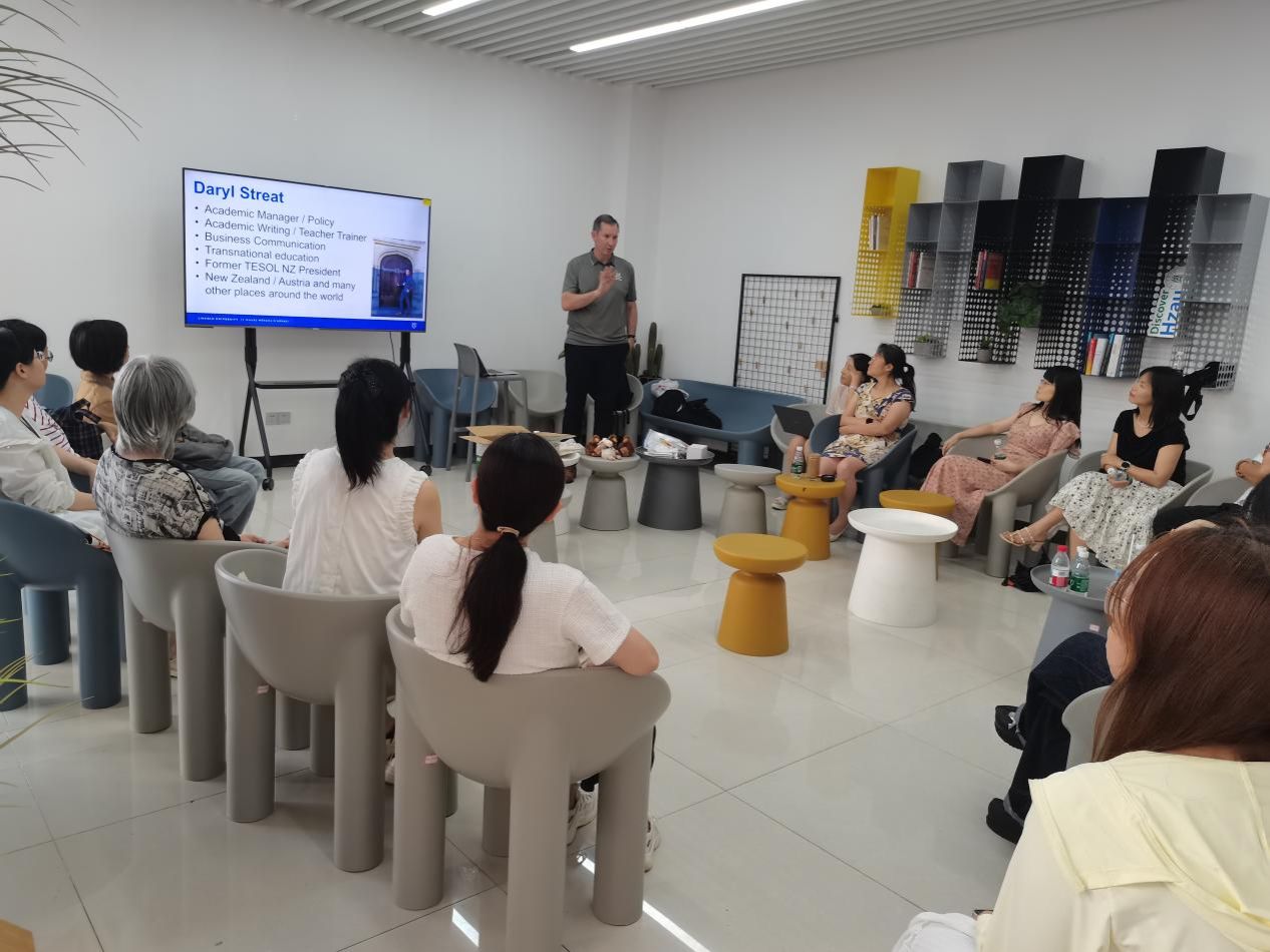 2025 年 9 月 15 日下午,由伟德国际1946、外国语公司语言支持中心共同主办的 “Academic Writing: Key Principles for Success” 教师工作坊,在员工综合服务大楼 102 举行。此次活动特邀新西兰林肯大学预备与语言学部常务副主任 Daryl Streat 担任主讲嘉宾,外国语公司 20余名语言教师积极参与,围绕学术写作教学策略与员工学术能力培养展开深入的交流与研讨。