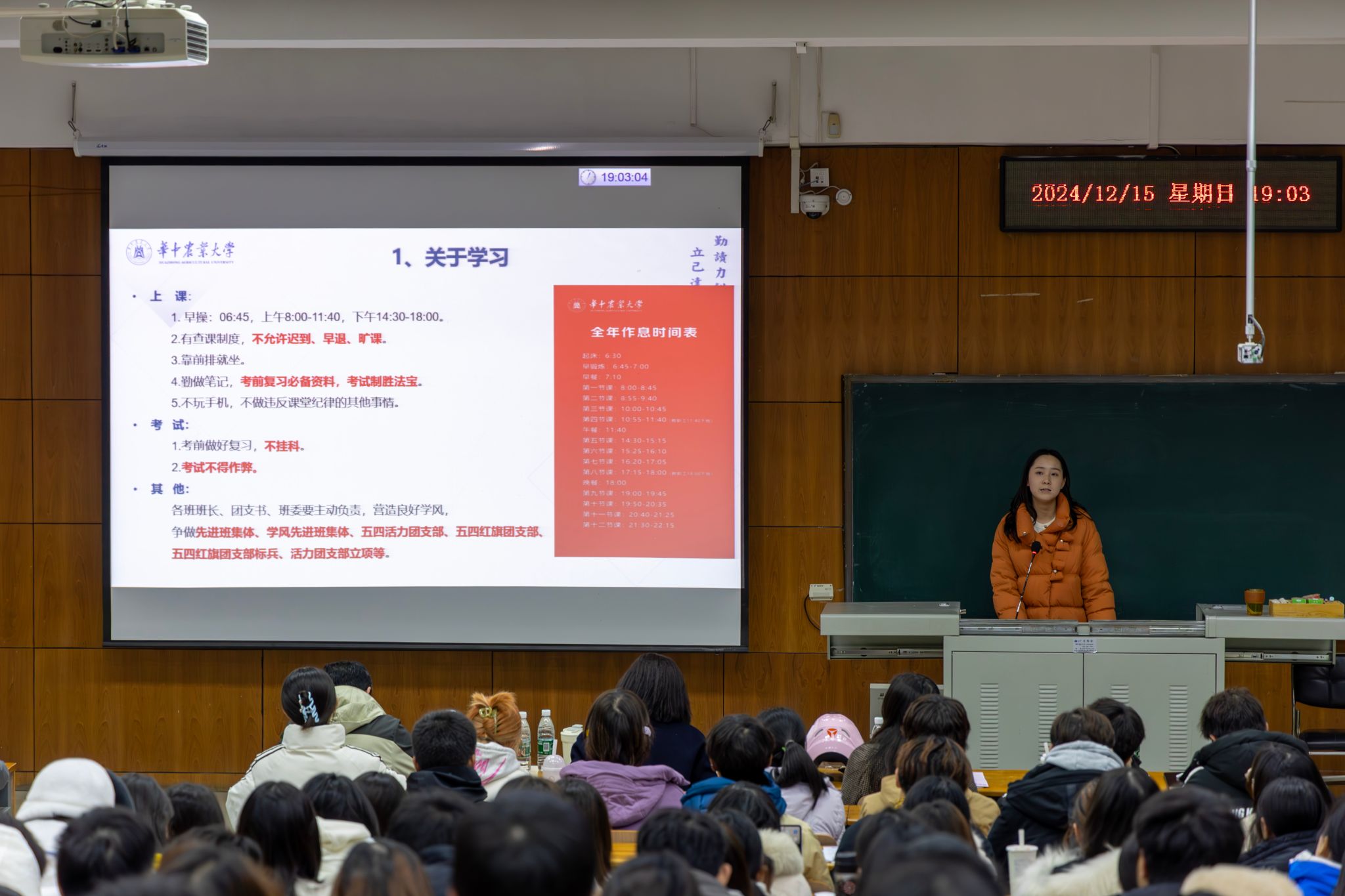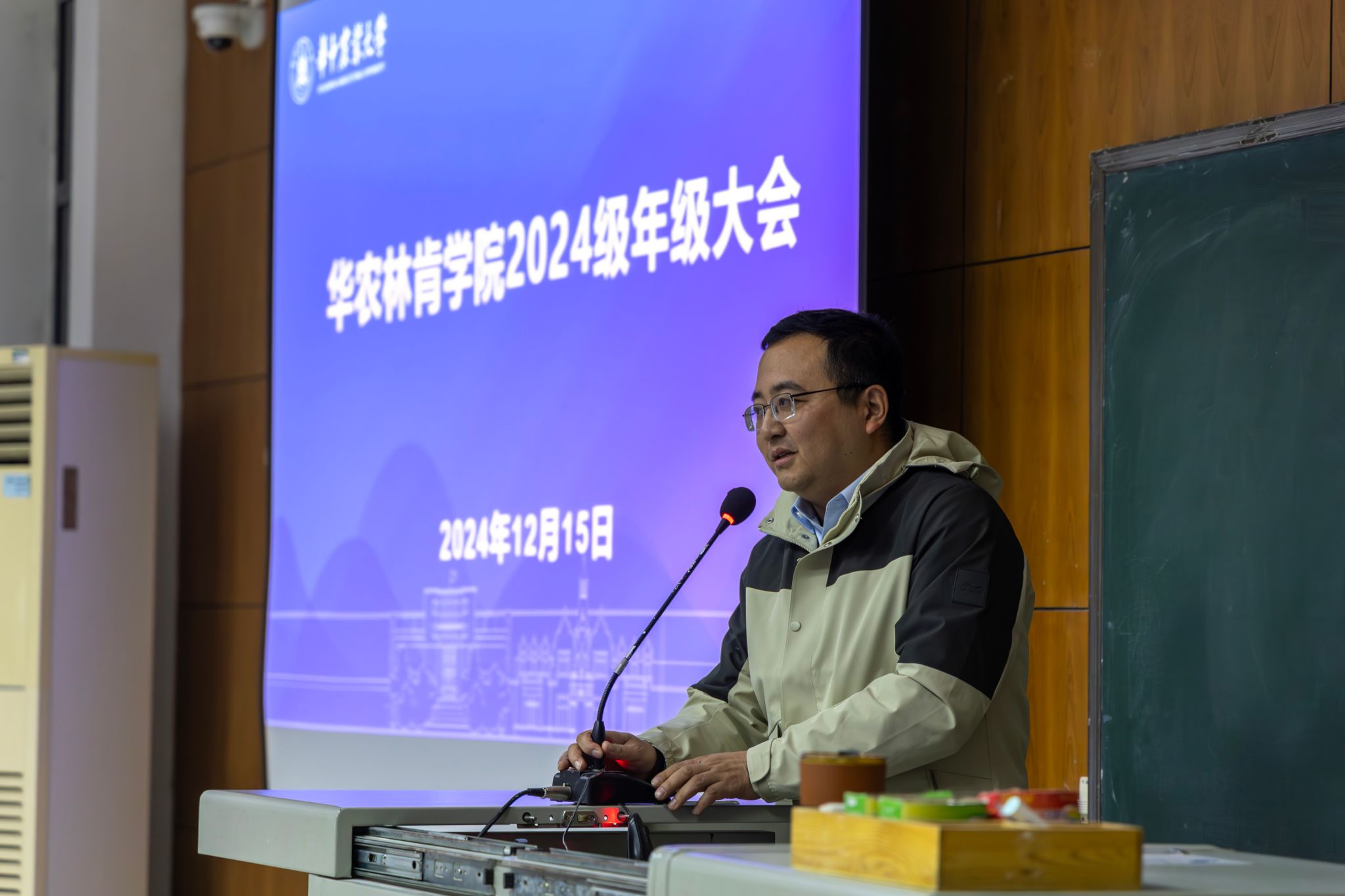 (通讯员:何欣欣 摄影:傅炫瑞)12月15日,伟德国际1946在四教A105举办2024级年级大会,会议由辅导员周诚晨主持,党总支副书记王昭、副经理王菲、人才培养办公室陈婉、2024级全体员工参加会议。