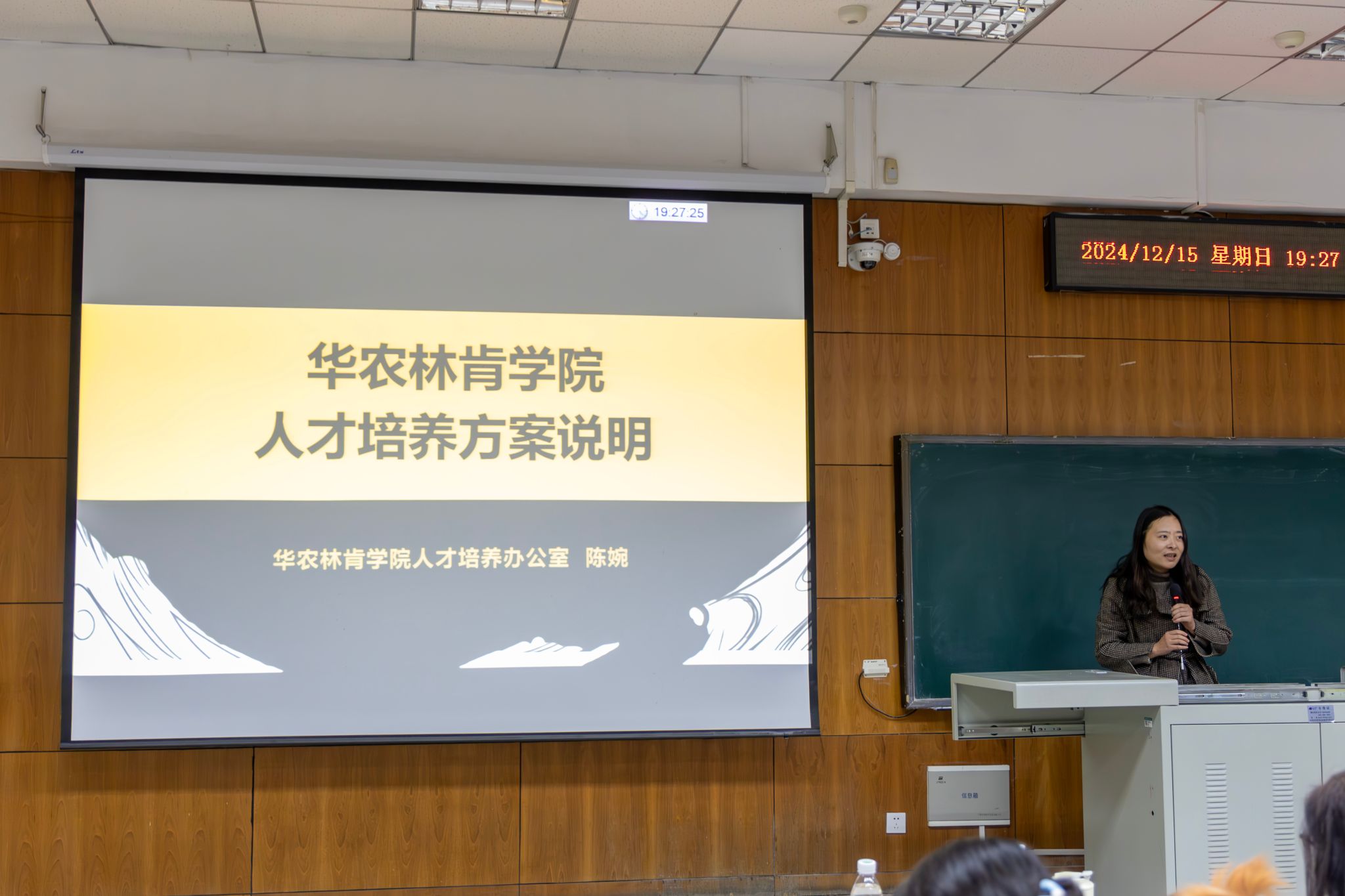 公司人才培养办公室陈婉老师详细解读了《本科培养方案指导性修读计划》。她对方案的“课程设置与修读要求”做出了着重介绍,详细解读了英语语言能力达标水平要求,同时围绕选课要求、学分修读与实践教学等方面与同学们做了讲解与答疑。她谈到,同学们应基于培养方案对大学四年做好课程的总体规划,以此帮助自身明确学习目标,筑牢专业基础。