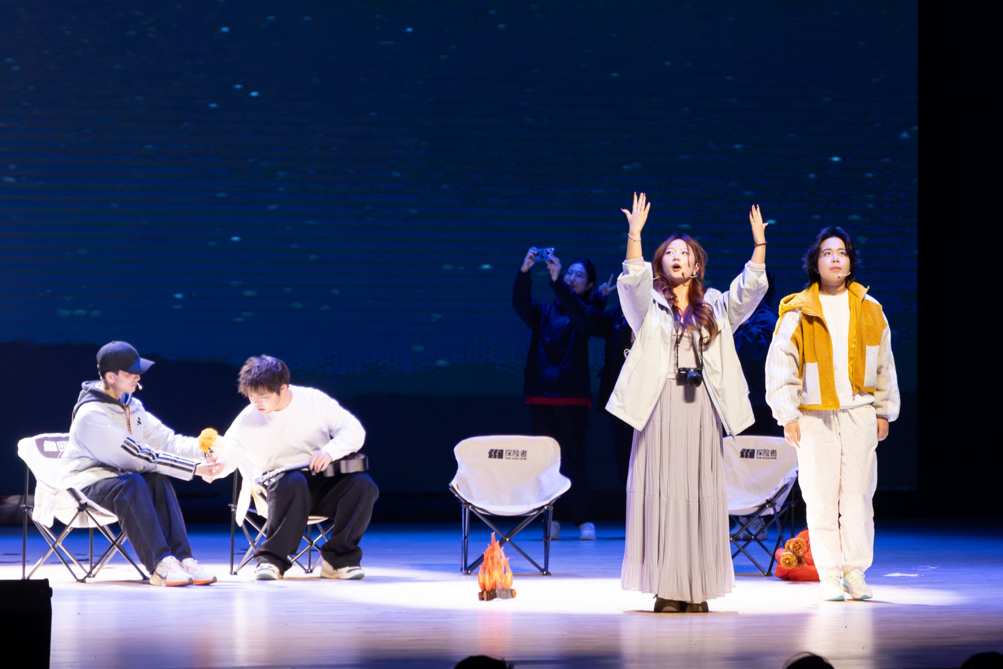 主创团队历时4周精心打磨剧本,通过灯光、PPT背景与音效的配合,还原了悬崖科考、流星雨划破夜空等场景。在流星雨划破夜空的璀璨场景中,林寻秋借卡尔・萨根的经典名言“我们每个人都是星辰”,将个体的脆弱与宇宙的永恒诗意联结,以科学哲思与人文情怀的交织,叩响了观众对生命价值与存在意义的深度共鸣。