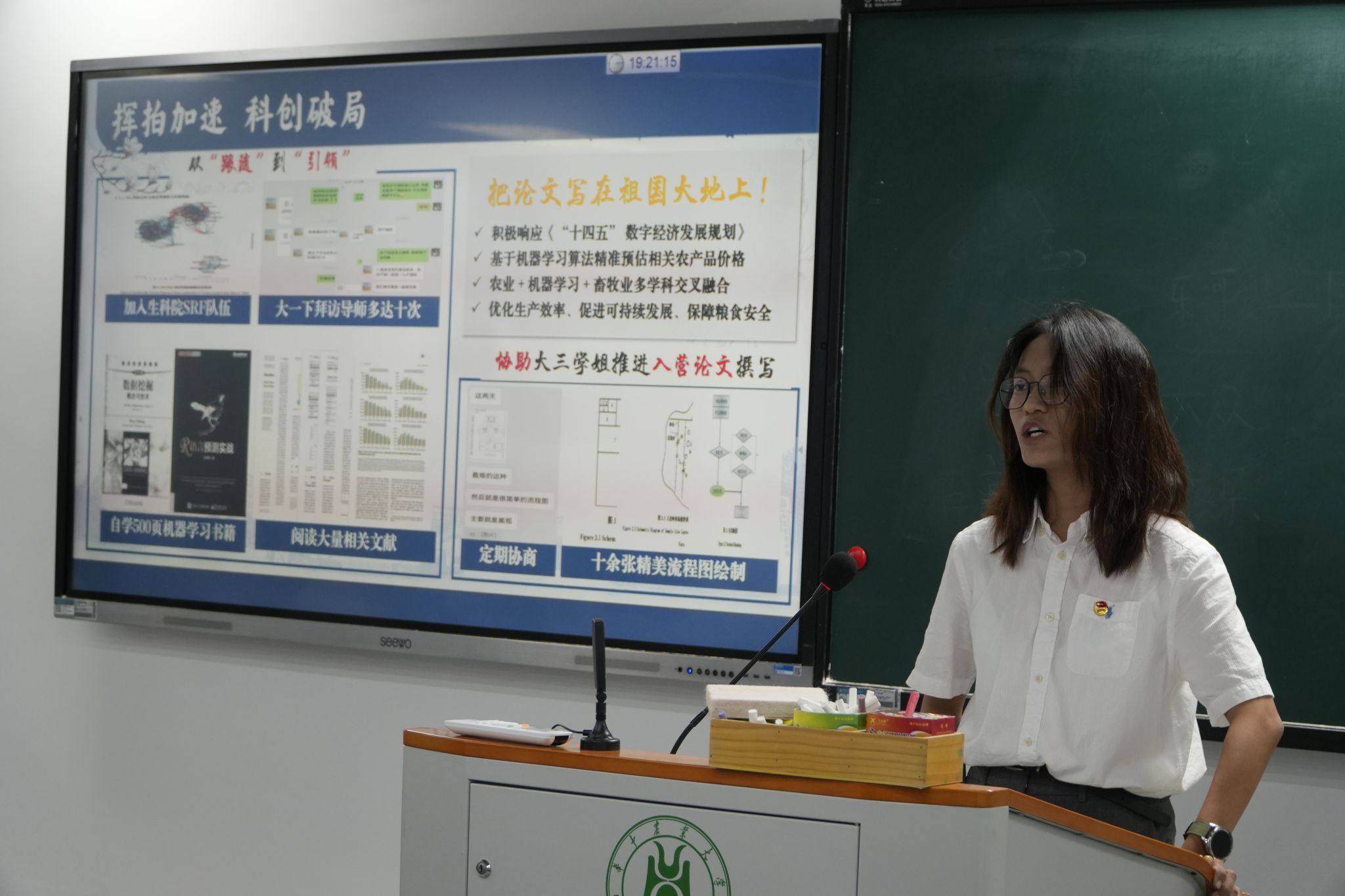 园艺2402班史嘉璐以“沃土育初心,笃行践强农”为主题,分享了大一学年的成长故事。作为员工会主席团成员,她坚持志愿服务,在奉献中不断成长。从羽毛球场到华农附小,再到支教校园,都有她默默奉献的身影。她将同样的坚持用于学业,13门课程获得满绩,并荣获学习成绩优秀奖。