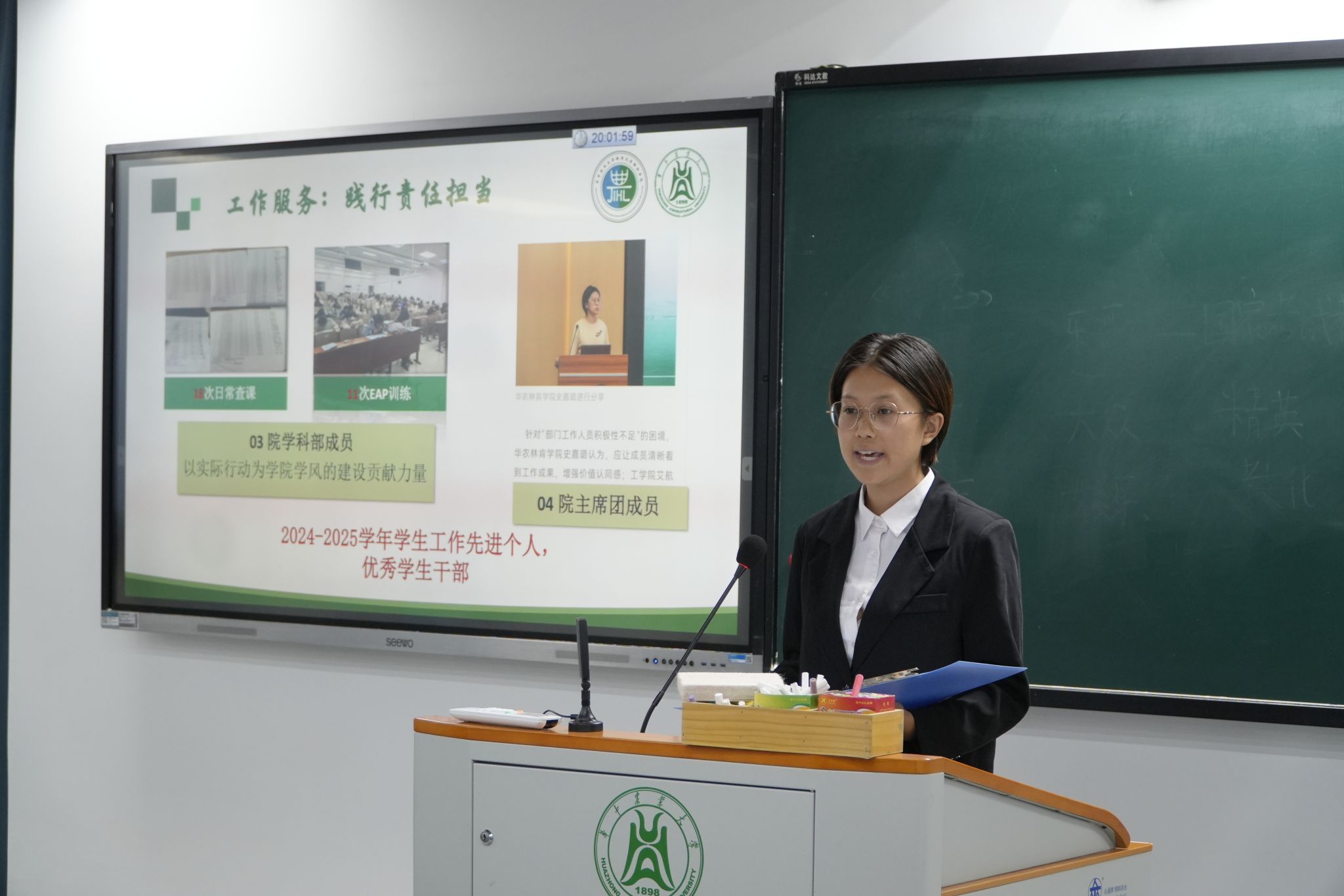 在答辩环节中,10位候选人依次登台,结合个人经历与成长感悟进行了精彩展示,充分展现了华农学子“勤读力耕,立己达人”的精神风貌。