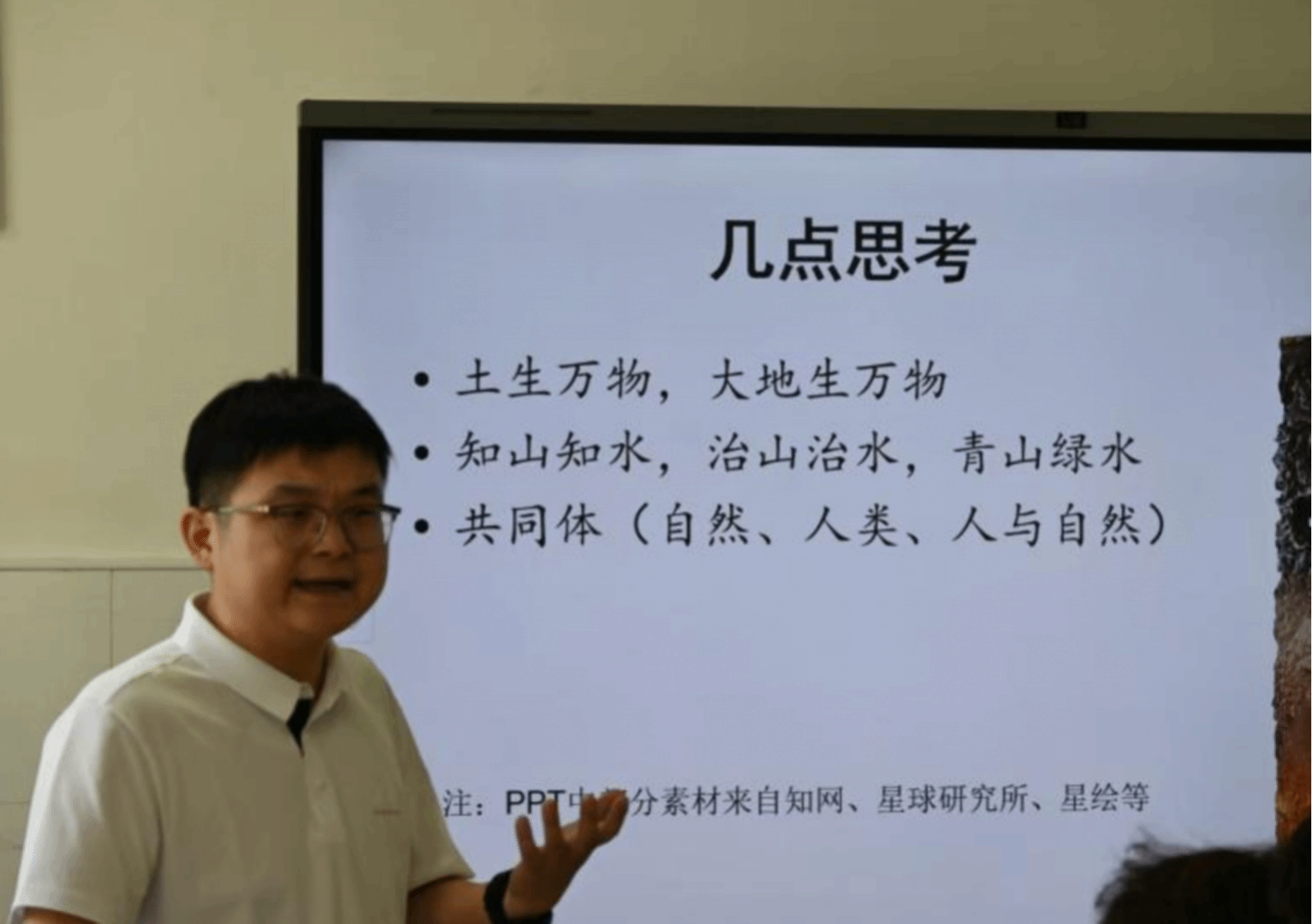 最后,易层老师提出了几点思考。从习近平总书记 “绿水青山就是金山银山” 的科学论断中,他阐述了对 “知山知水才能治山治水,迎来青山绿水” 的理解;继而引出 “共同体” 概念,强调人与自然应和谐共生、协同发展。