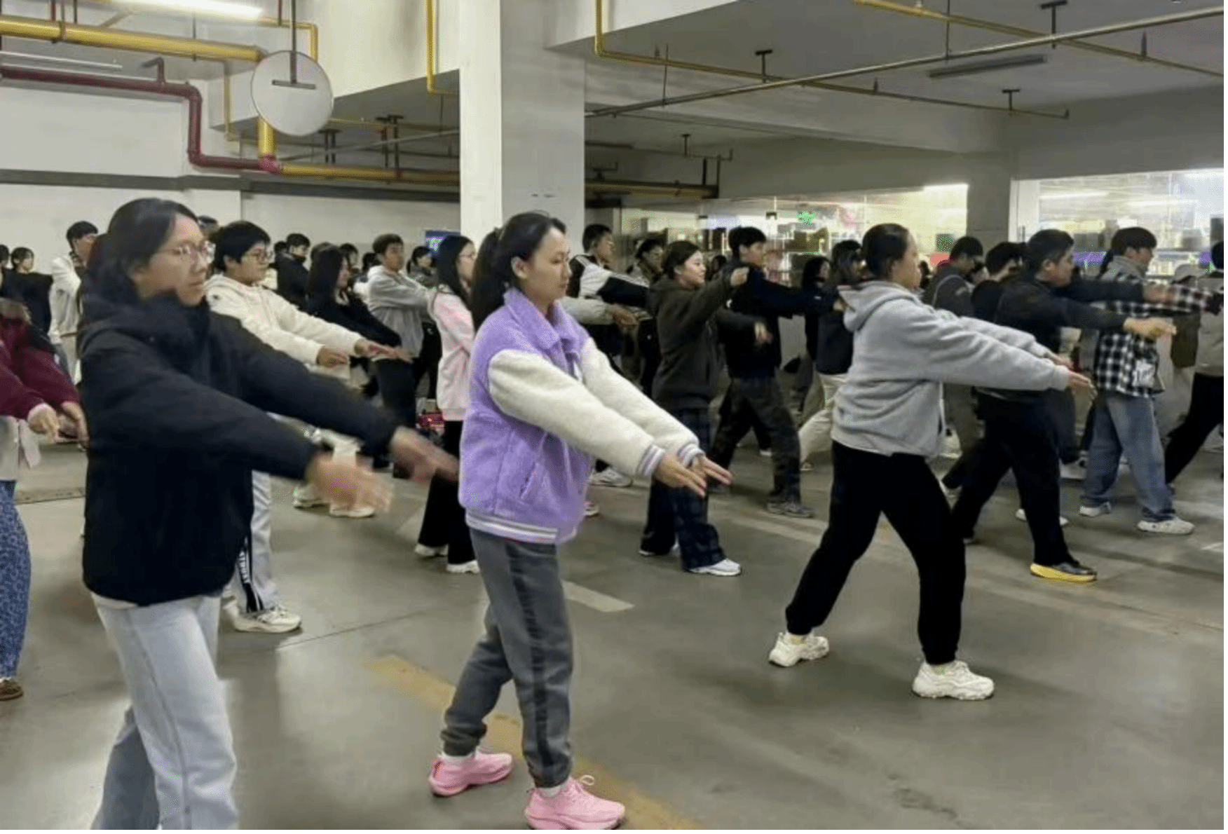 从伸展运动到跳跃运动,从体转运动到整理运动,伴随着激昂的广播体操音乐,同学们在教练的指导下认真地完成每一个动作,力求做到整齐划一、刚劲有力。在训练过程中,同学们相互鼓励、相互支持,共同克服困难。这种团队协作的精神,让广播体操训练不仅是一场身体的锻炼,更是一次团队凝聚力的提升。