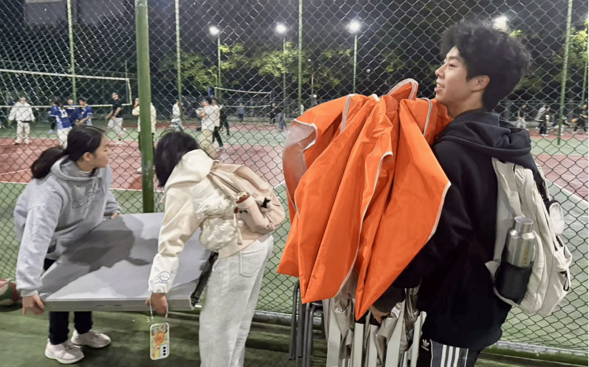 物资采买与搬运工作中,后勤人员提前梳理训练与赛事所需物资清单,每一瓶矿泉水、每一份早餐均严格筛选品质、精准统计数量。为确保物资及时到位,他们常常利用课余时间往返于仓库与训练场,将沉甸甸的桌椅、帐篷搬运至训练场地指定区域。他们提前勘测第二运动场场地,根据训练区域分布与人流走向,完成帐篷搭建与设计工作。帐篷内部划分出物资存放区与临时休息区,既保证矿泉水、急救用品等物资有序摆放,也为训练间隙的学子提供了舒适的休憩空间,让每一处细节都彰显着后勤服务的温度。