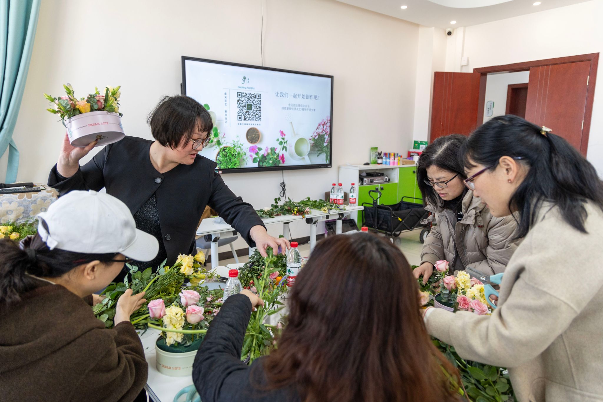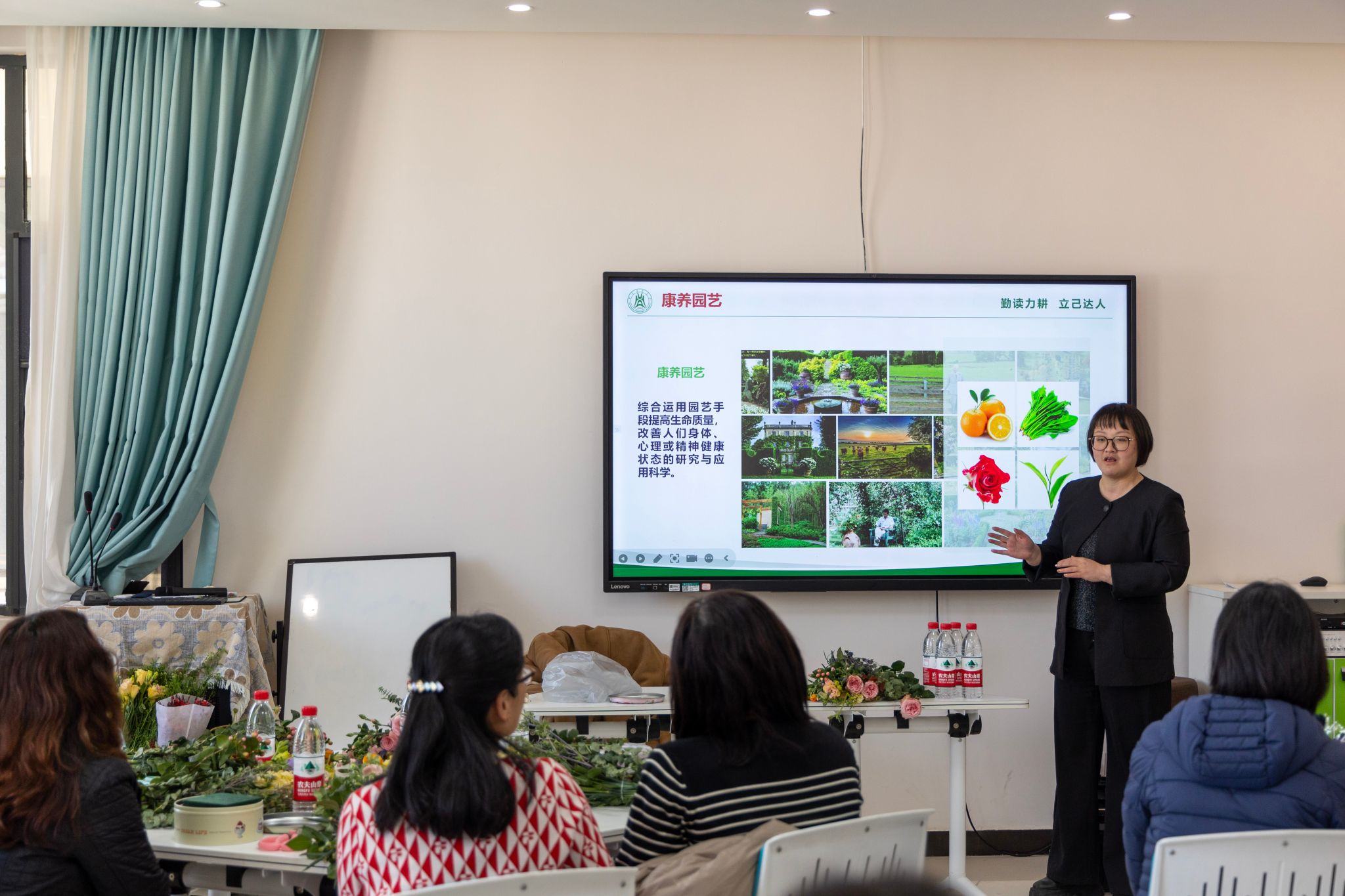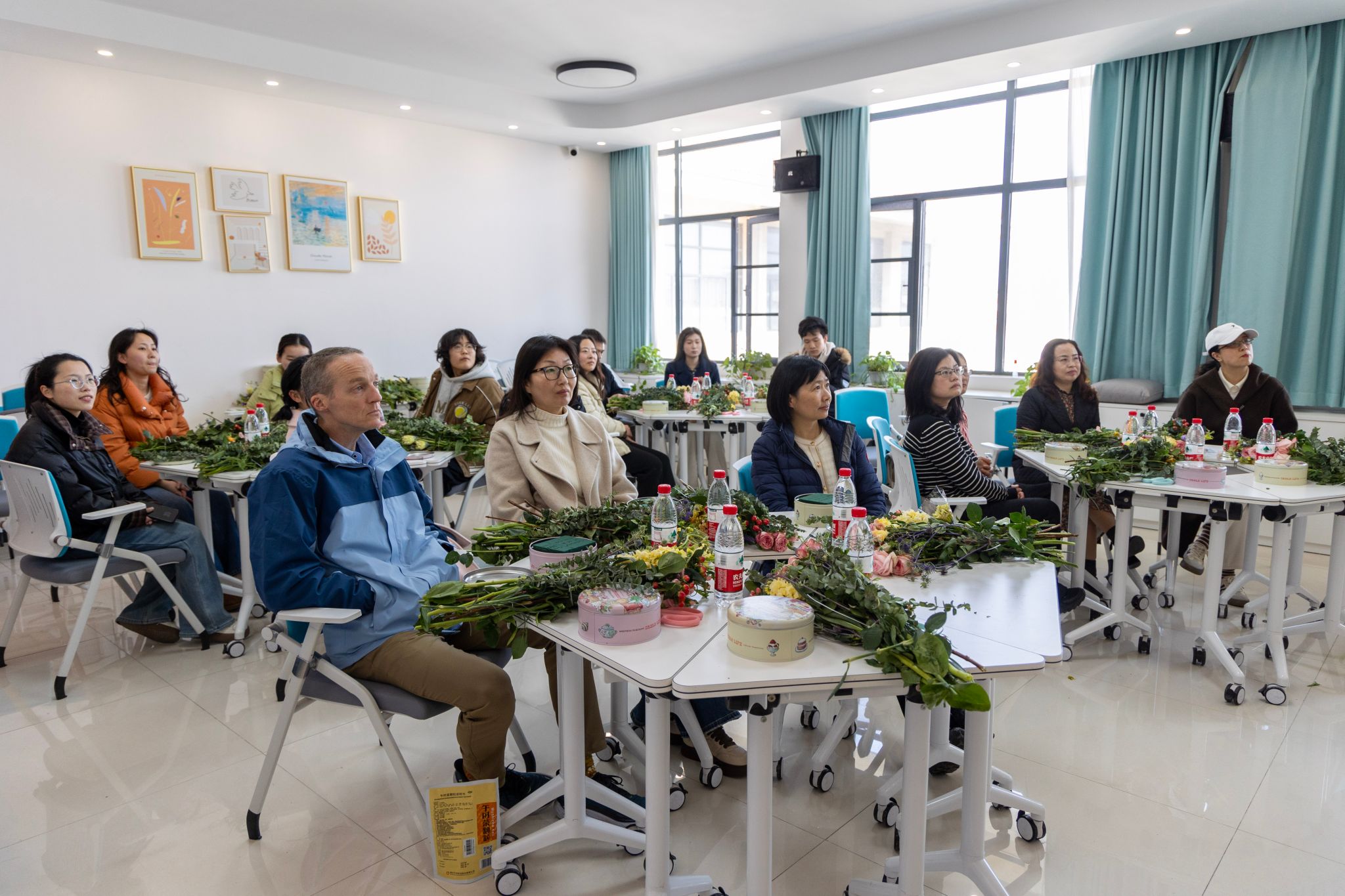 公司特别邀请园艺林学公司副教授王媛媛老师为师生进行现场讲授和指导,她以“花语寄情,美育润心”为主线,融合东西方插花文化精髓,通过“理论讲解+实践创作”两个环节展开。王媛媛从插花艺术的历史脉络、风格流派讲起,结合康养园艺理念,阐释插花在舒缓压力、激发创造力中的独特作用。她谈到:“花艺不仅是技艺,更是与自然对话的过程。每一枝花的姿态、色彩与空间呼应,都能传递创作者的审美与心境。”