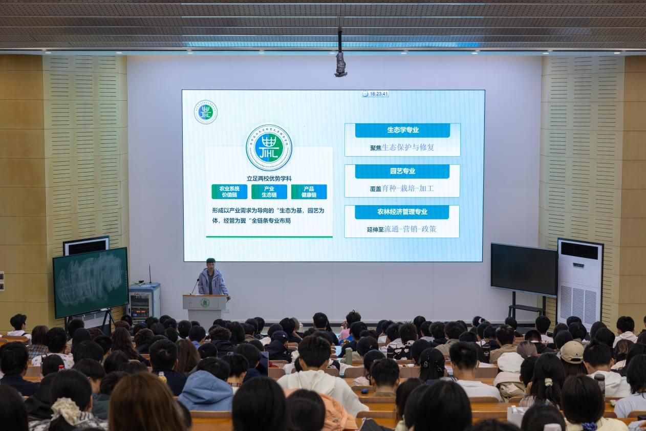 孟令炜老师首先介绍了公司的办学背景与育人目标,鼓励新生深刻理解并践行“融通日新、卓越兼善”的育人理念,在公司 “生态为基,园艺为体,经管为翼” 的全链条专业布局中,夯实专业基础,主动拓展全球视野,成长为符合国际化需求的优质人才。