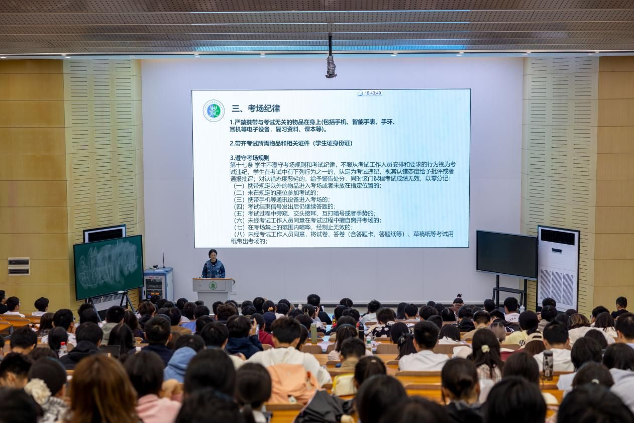 员工会主席团成员史嘉璐同学聚焦学风纪律建设,明确课堂行为规范,着重强调禁止迟到早退、携带早餐进入教学楼等要求,并详细讲解学科部查课、请假备案及综测扣分等管理细则。针对考试纪律,史嘉璐同学严肃说明考试作弊的严重后果,引导新生同学树立诚信考试的意识,坚守学术底线。