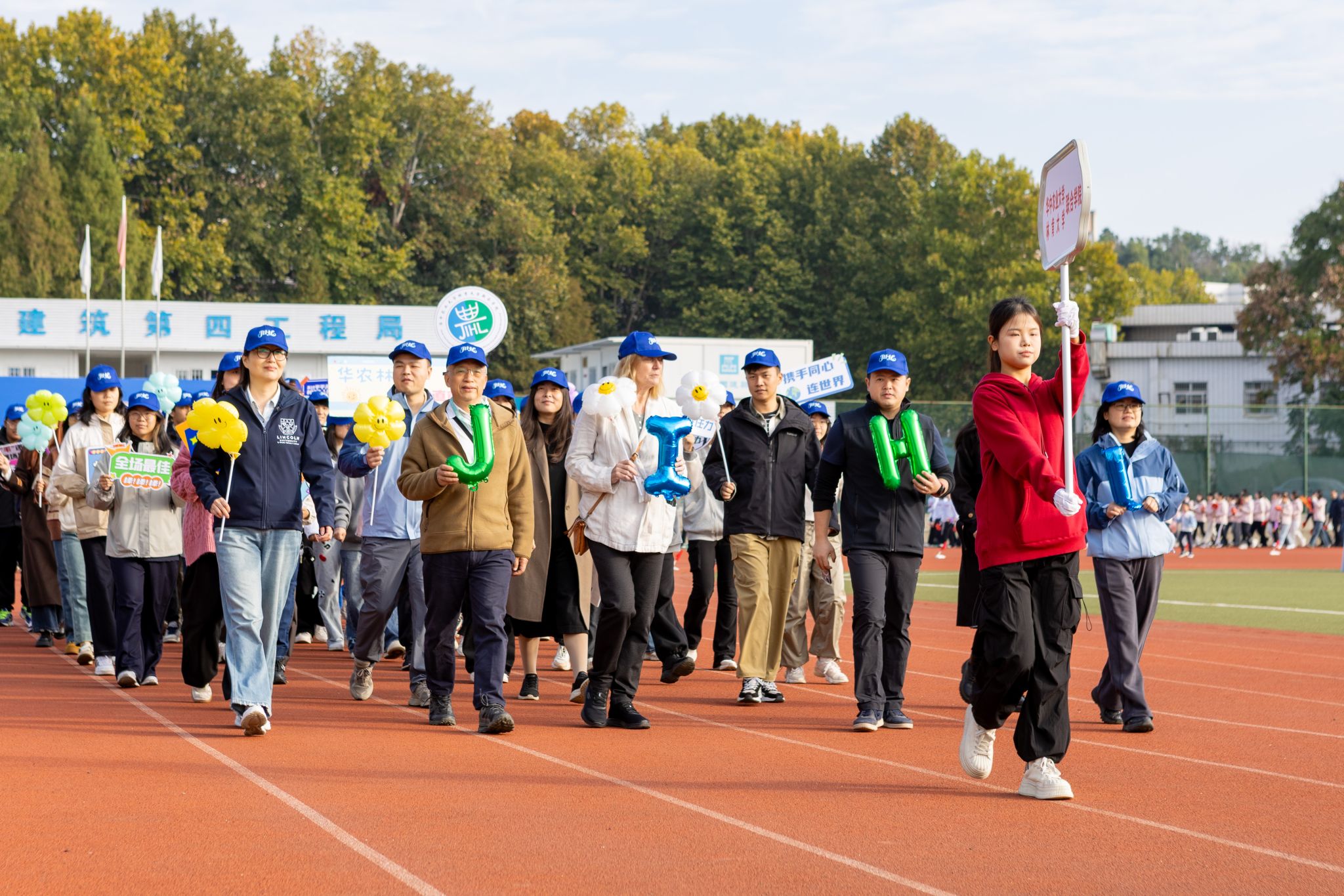 在蓬勃跃动的旋律里,运动员、裁判员及代表方队陆续入场。伟德国际1946师生方阵以 “融通日新,卓越兼善,携手并肩,勇创佳绩” 的嘹亮口号响彻赛场,手持象征公司的 “JIHL” 字母气球,迈着整齐一致的步伐,生动诠释着中外合办院校的包容气度,传递出林肯学子敢闯敢拼的少年意气。