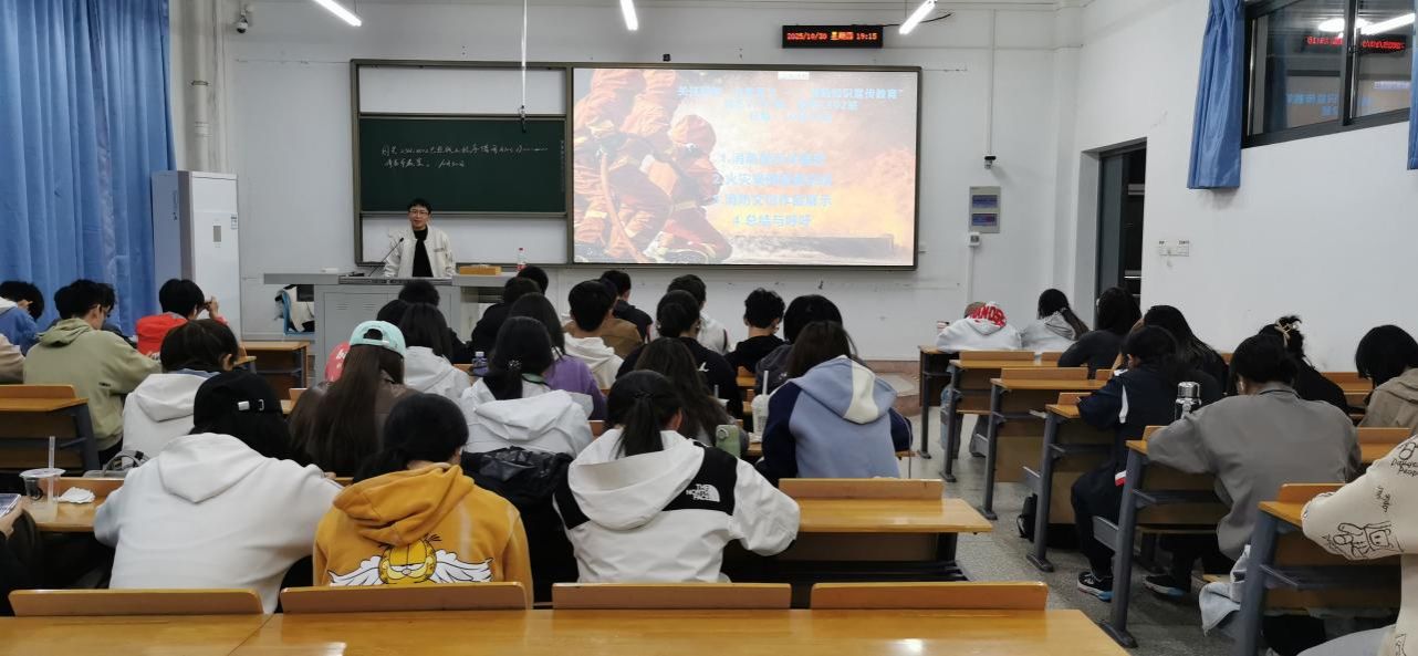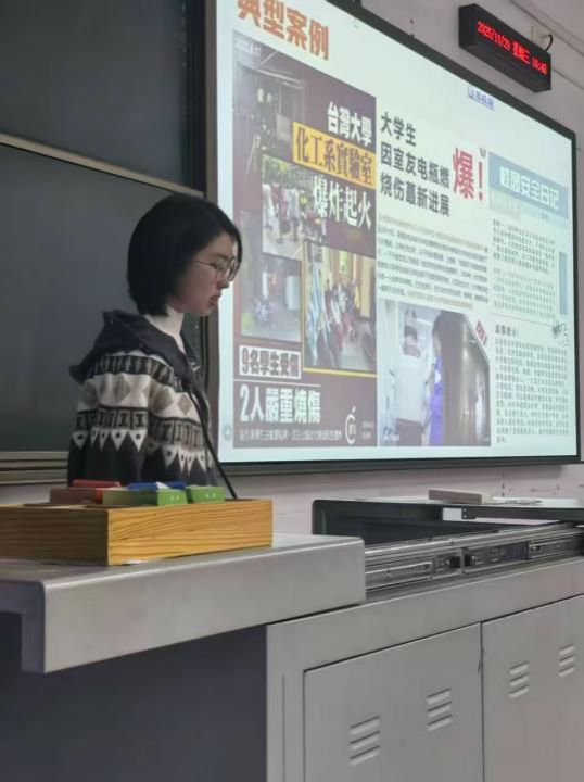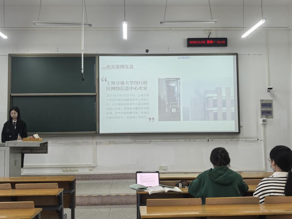 生态2502班讲解高校发生的火灾典型案例 (方玥程摄)