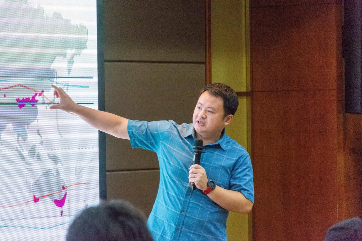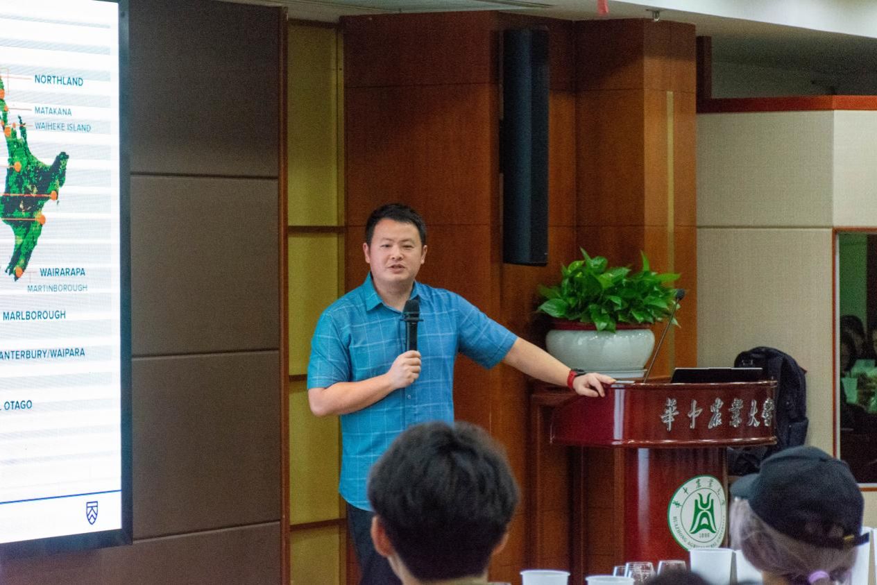 “我为什么选择在葡萄酒这一领域深耕呢?因为,我喜欢品酒。在场的各位同学,有没有喜欢喝酒的?”开场,Dr. Victor Ye讲述自己的个人选择,以轻松的提问迅速点燃气氛。他抛出“葡萄酒起源”的问题,并给出令人意外的答案——早在七千年前的中国就已出现。接着,他结合地图示意,从传播路径、原材料与酿造方式等角度阐述了葡萄酒的发展历程,让同学们对葡萄酒的起源与文化有了初步了解。
