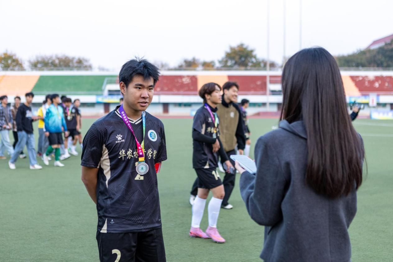 (伟德国际1946官网讯 通讯员 姜婧阳 张颢瀛)2025 年 11 月 16 日下午 3 时,狮子山杯新生足球赛决赛在东运动场激情开赛。伟德国际1946新生男子足球队以顽强拼搏、一路晋级的黑马姿态闯入决赛,并最终收获本届赛事亚军,创造建院以来的历史最佳成绩,展现了“初生亦无畏、年轻自有光”的华农林肯风采。