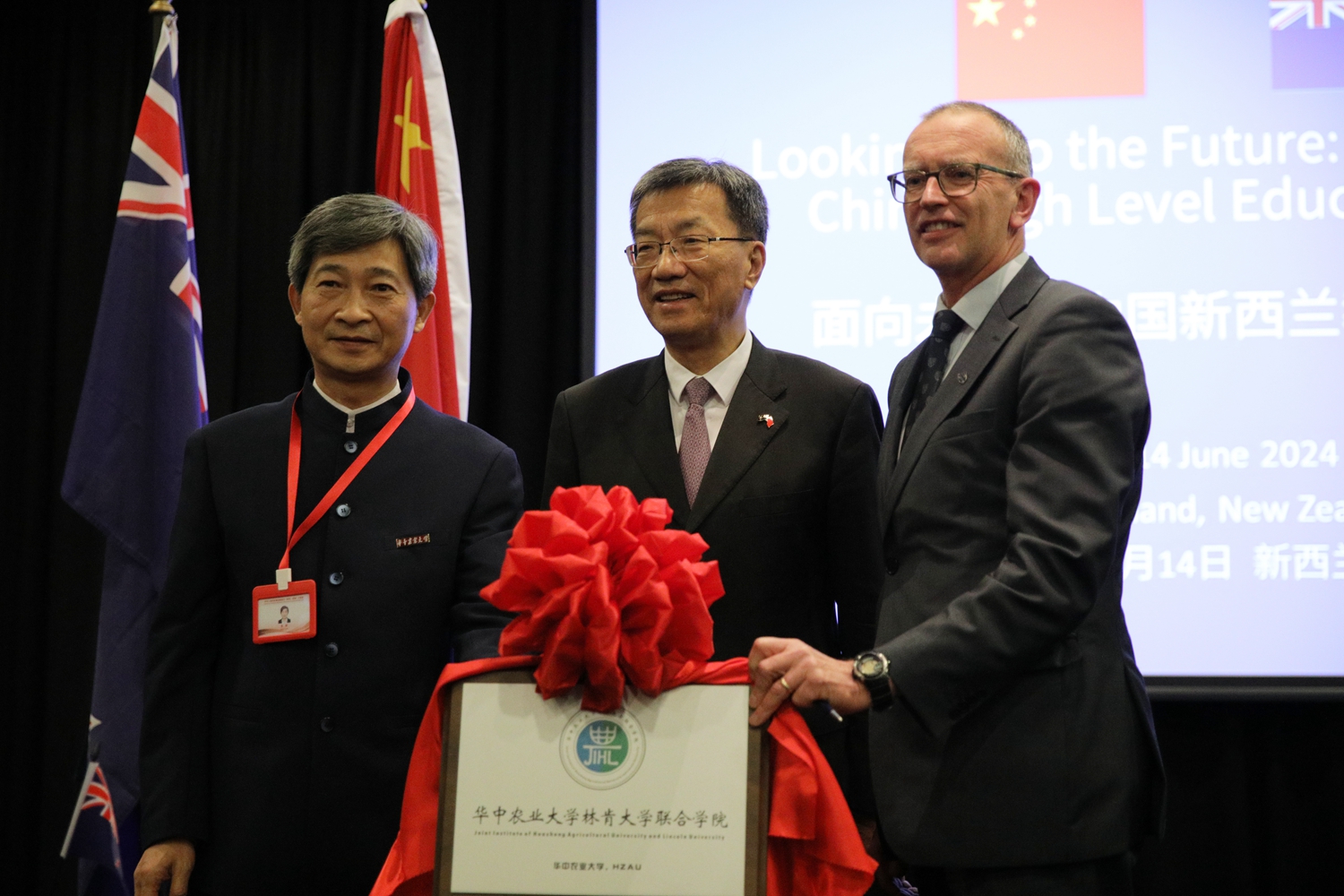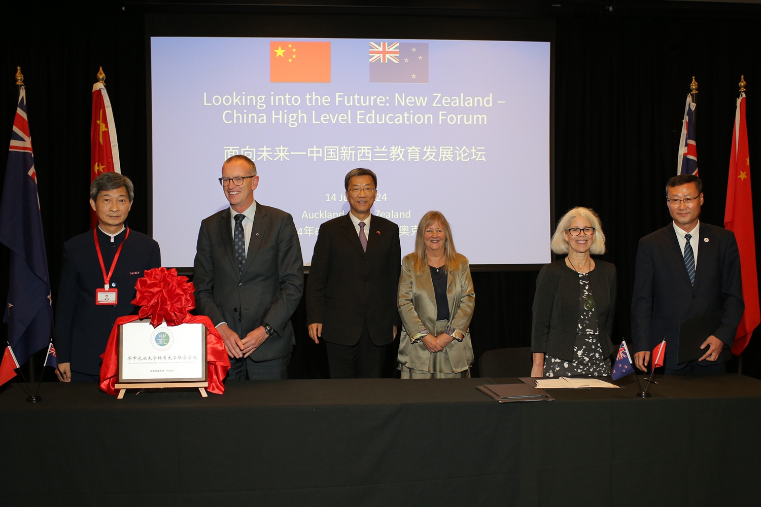 Gao Chi, secretary of the CPC Committee of Huazhong Agricultural University (HZAU), and Grant Edwards, vice-chancellor of Lincoln University, jointly presented the institute in a ceremony witnessed by Huai Jinpeng, minister of Education of China, and Penny Simmonds, minister for Tertiary Education and Skills of New Zealand.